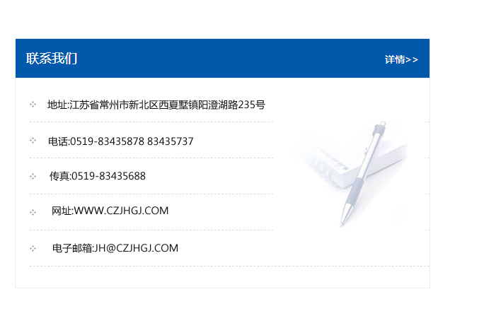 傳真:0519-83435688    郵編:213135    網址:WWW.czjhgj_com.haishen1688.com    電子郵箱:JH@czjhgj_com.haishen1688.com